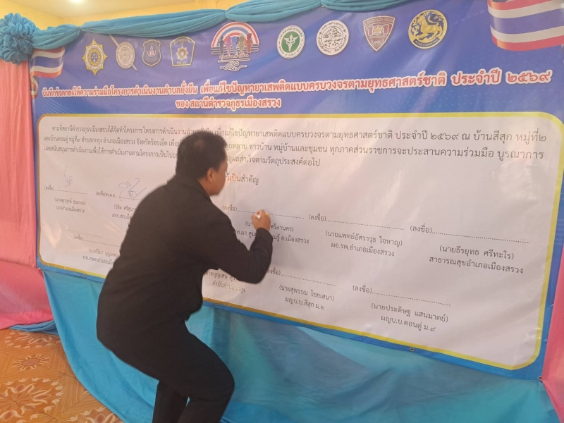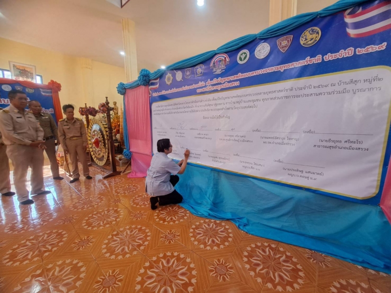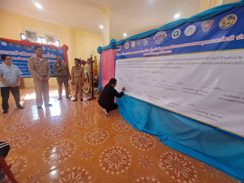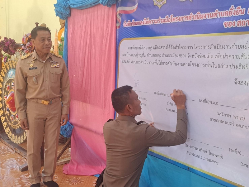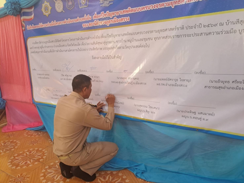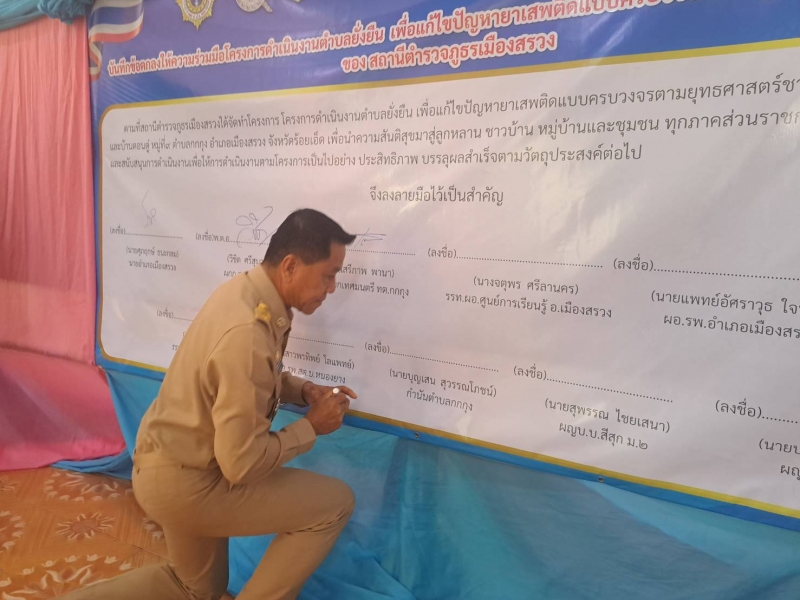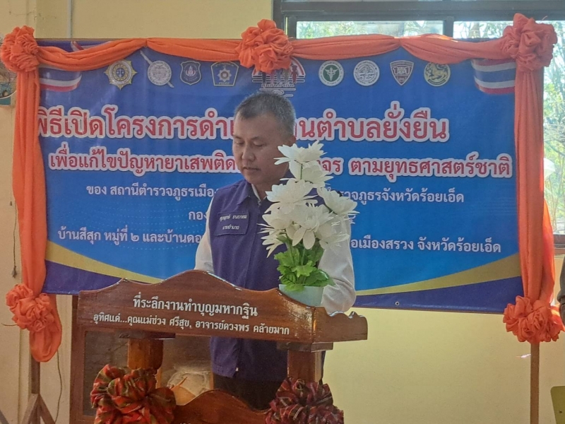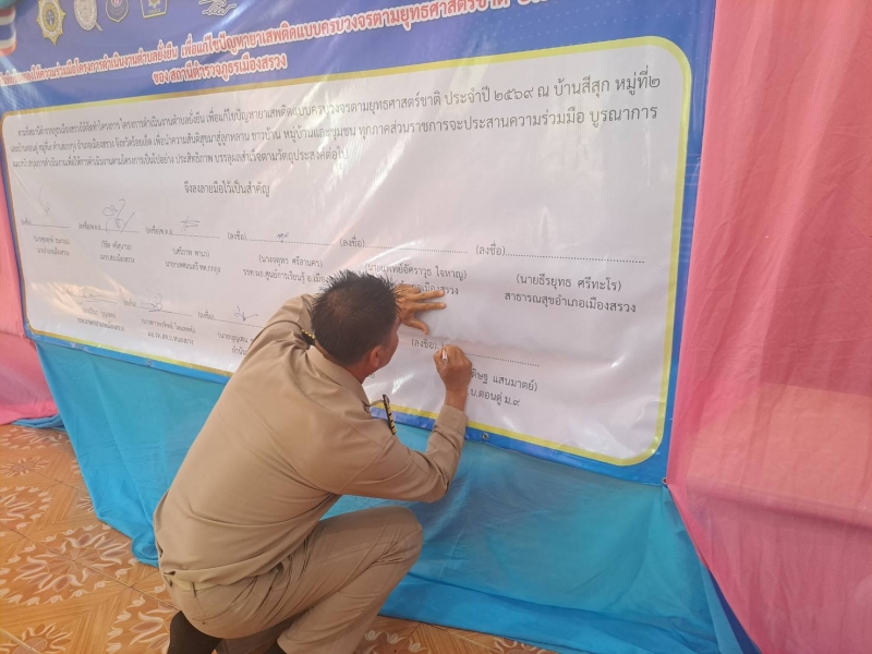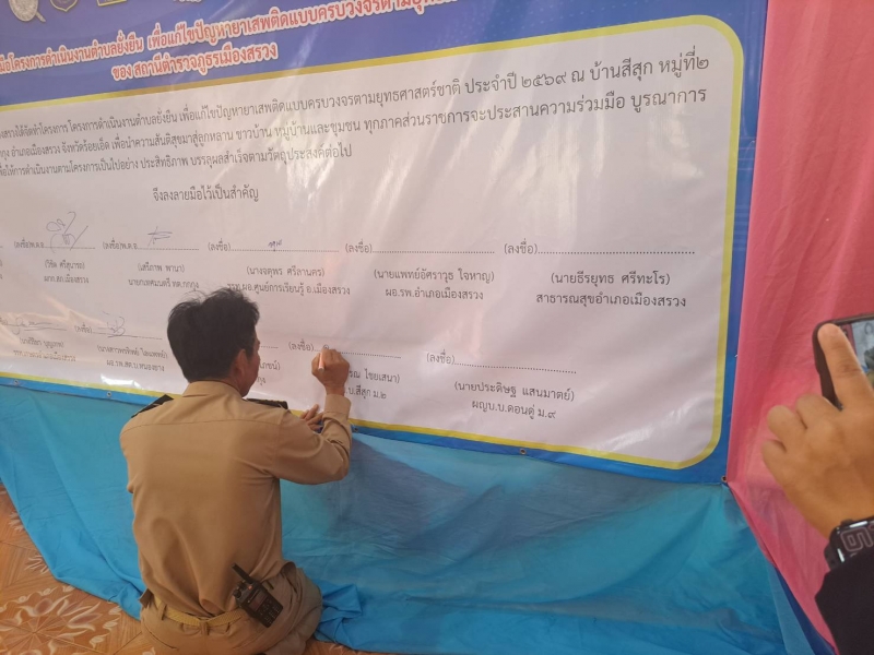 พันตำรวจเอกเสรีภาพ พานา นายกเทศมนตรีตำบลกกกุง พร้อมด้วย ผู้บริหาร หัวหน้าส่วนราชการ ร่วมพิธีเปิดและลงนามโครงการดำเนินงานตำบลยั่งยืนแก้ไขปัญหายาเสพติดแบบครบวงจร ณ บ้านสีสุก หมู่ที่ 2 ตำบลกกกุง อำเภอเมืองสรวง จังหวัดร้อยเอ็ด